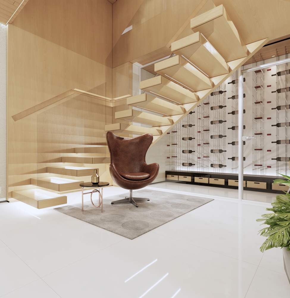 • Cave com garagem para dois veículos, lavandaria e arrecadação