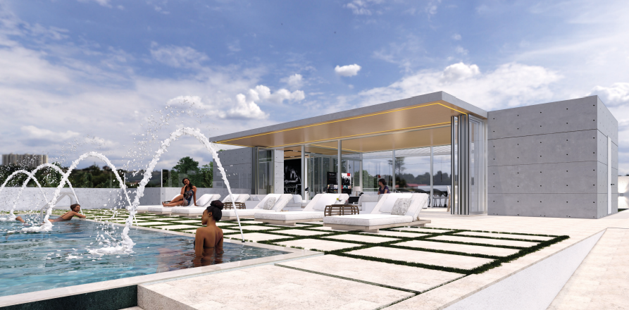 • Piscina em alvenaria com deck e zona de churrasqueira